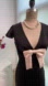 This elegant black dress features a charming ivory bow accent, perfect for any special occasion. Beautiful v-neck cut . Its classic design and flattering fit frames the body beautifully while still being comfortable. Rhinestone detailing creates a polka dot effect.