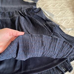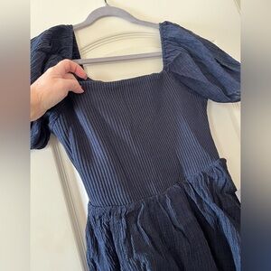 Step out in style with this elegant navy blue tiered dress. Perfect for any occasion, this dress offers a flattering fit and a chic look.