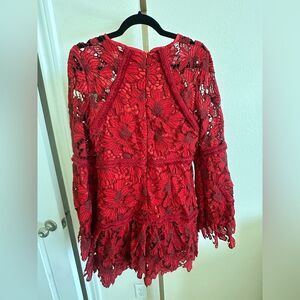 Turn heads with this stunning red lace dress, perfect for any special occasion. Its intricate design and vibrant color make it a must-have in your wardrobe.