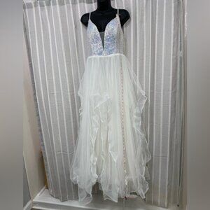 NWT Elegant White with Iridescent Sequins Prom Homecoming Wedding Gown Size XL