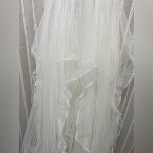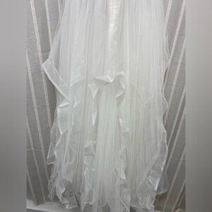 New With Tags. Stunning gown with a sequin bodice. Flowy layered tulle skirt. Perfect for special occasions. Adjustable straps that lace in the back. Lined with padded cups. Fully lined skirt.