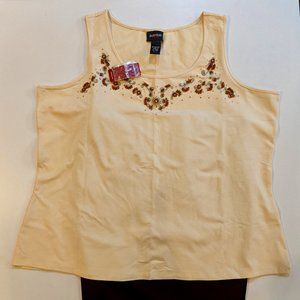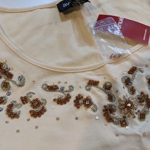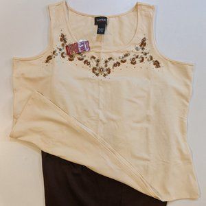 Small elegant beading design outlining the tank top. Pair it with maxi skirts / pants I'm selling and save on shipping!