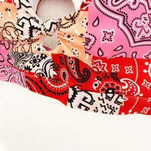 NWT Eleven by Venus Williams Bandana Babe Sports Bra. Stylish active top with a vibrant red and pink bandana pattern. Features a keyhole front design. Size XL.