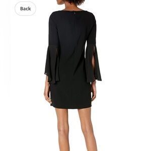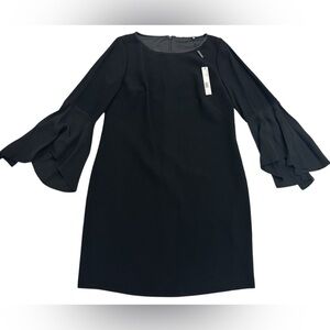 NWT Elie Tahari 3/4 Frayed Silk Sleeve Chain-Trim Sheath Esmarella Dress Black 14