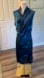 This elegant silk dress features a stunning blend of blue and green hues, perfect for any special occasion. Painterly front and solid navy back. Features a wrap style top that can be worn different ways, bodycon fit, and raw hem detail. Side zipper and fully lined. 95% silk, 5% elastane. Purchased for an event and never worn. As seen on TV in 2023.