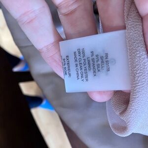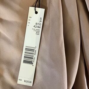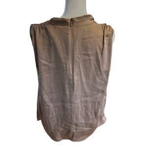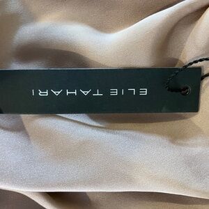 NWT Elie Tahari Fawn colored silk blend blouse Zips in back with hook and clasp at the top of zipper. Beautiful flow and fabric is gathered at shoulders for a stunning look. Size is Small