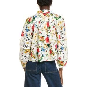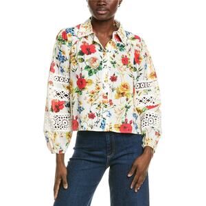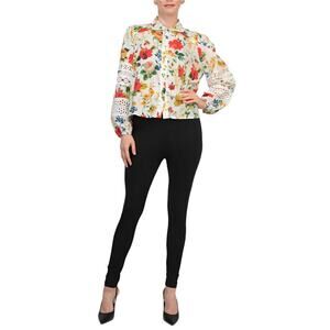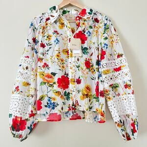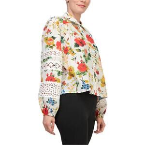 NWT Elie. Tahari High Collar Floral Lace Embellished Women's Blouse Top Shirt L