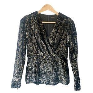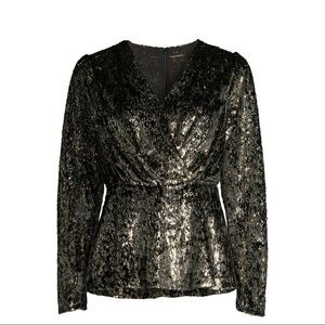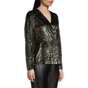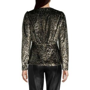 NWT Elie Tahari Holiday Festive Metallic Long Sleeve V-Neck Wrap Blouse Size XXS
