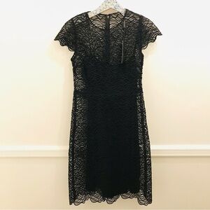 NWT Elie Tahari Lace Elissa Midi Dress 2 black short sleeves