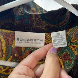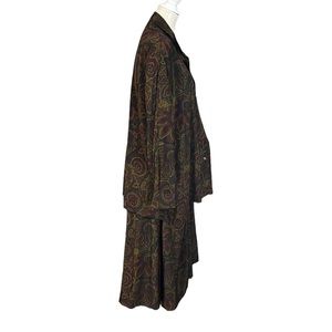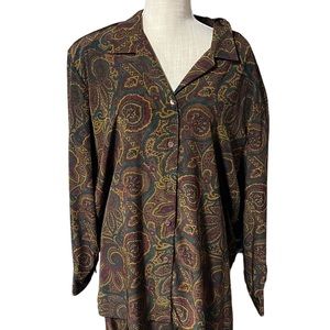 NWT Elisabeth 2 Piece Long Sleeve Button Up Blouse Skirt Brown Paisley Womens 22