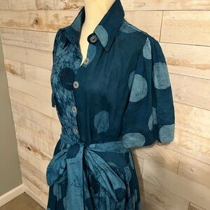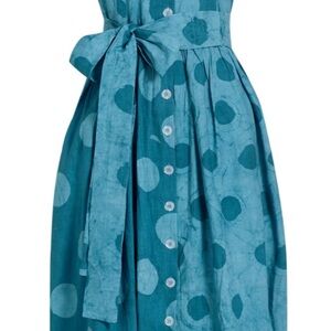 NWT blue Asake maxi dress with pockets by Elisamama size L Step out in style with this elegant blue polka dot maxi dress. Perfect for any occasion, this dress features a flattering tie waist and a classic button-down front. Embrace timeless fashion with this chic piece.