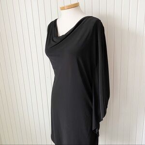 NWT Eliza J Black Sheath Cocktail Party Dress with One Side Wing Sleeve Size 10