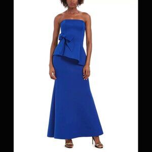 NWT Eliza J Blue Bow Peplum Strapless Gown $198