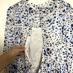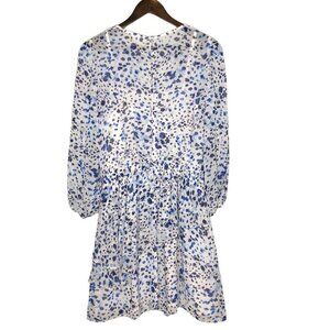 NWT Eliza J. Blue and White Chiffon Speckled Dress with Ruffles Size 10