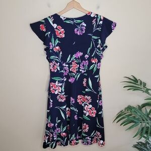 NWT Eliza J | Dark Navy Floral Dress with Flutter Sleeves