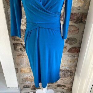 NWT Eliza J Faux Wrap Ruched Jersey Sheath Midi Dress $118 Womens 6