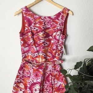 A stunning brand new dress with a fitted top and circle pleated bottom skirt. Comes with a skinny belt around the waist. Top is lined, bottom is not. A stiffer material. Perfect for work or dress it up for a wedding.