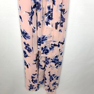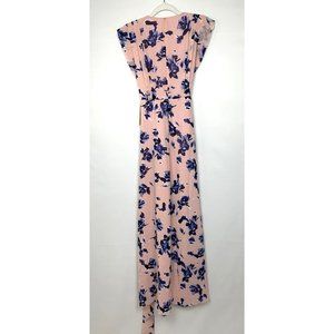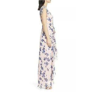 NWT Eliza J Floral Chiffon High-Low V-Neck Waist Tie Maxi Dress Pink Blue 2