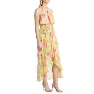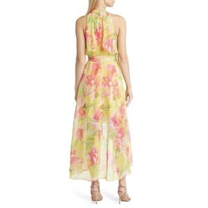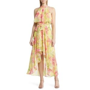 NWT Eliza J Floral Halter Neck High-low Chiffon Dress In Yellow