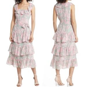 NWT Eliza J Floral Ruffle Tiered Midi Dress Sz. 0