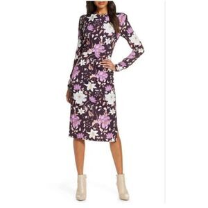 NWT Eliza J Floral Long Sleeve Body-Con Midi Dress