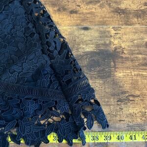 NWT Eliza J Lace Guipure Lace Asymmetrical Dress Size 12 Navy Short Sleeve $188