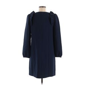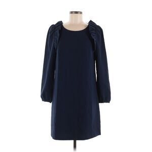 3/4 sleeve, ruffles, solid, ruffle accents, blue, short