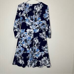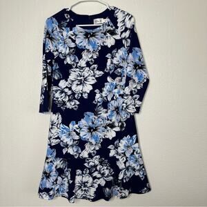 NWT Eliza J Navy Blue White Floral A Line Drop Waist Dress 6
