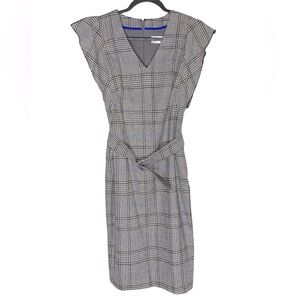 NWT Eliza J Plaid Flutter Sleeve Belted Sheath Dress