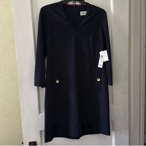 NWT Eliza J Ponte Knit 3/4 Sleeves Knee Length Midi Shift Dress