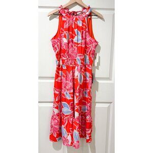 NWT Eliza J Poppy Sleeveless Floral Pink Tropical Halter Midi Dress Pockets 8