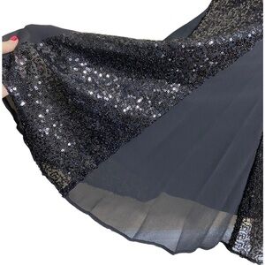 Floaty chiffon godets flare on a sequined skirt with plenty of movement, so it gives off maximum sparkle with every step.