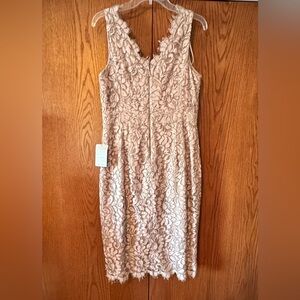 NWT Eliza J Womens Tulip Hem Dress Blush Pink Lace V Neck Lined Cocktail
