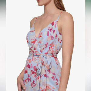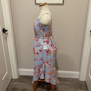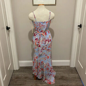 NWT!! Eliza J. - Women's V-Neck Floral Ruffle Hem Maxi Dress - Pink/Blue - 8