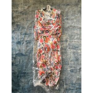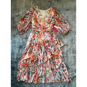 NWT! Eliza J Floral Print Tiered Ruffle High Low Dress in Blush Size 22W