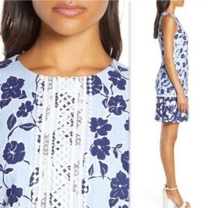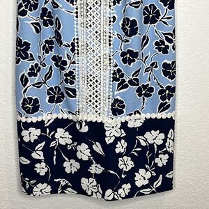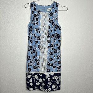NWT Eliza J Navy/Baby Blue Shift Dress with Lace Accents Size 4