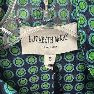 NWT Elizabeth McKay 100% Silk Elizabeth Blouse in Navy & Green Polkadot, size 6