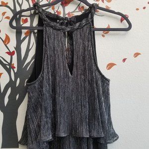 NWT Ella Moss Black Cerine Metallic Tiered Keyhole Illusion Dress