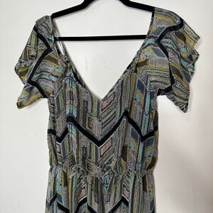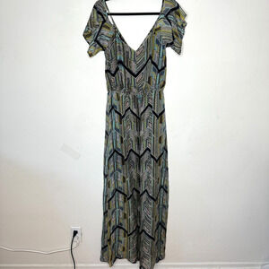 Anthropologie Ella Moss Colorful Mazatlan Off Shoulder Silk Maxi Dress Adjustable Straps Sheer lower Skirt