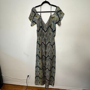 NWT Ella Moss Colorful Mazatlan Off Shoulder Silk Maxi Dress Adj Straps Med