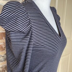 NWT Ella Moss Sandy Drape Gray Striped Top Fitted Puff Shoulder V-Neck Size S