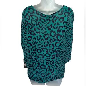 NWT Ella Moss green and purple animal cheetah print batwing top size XS