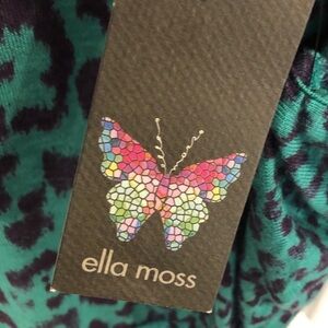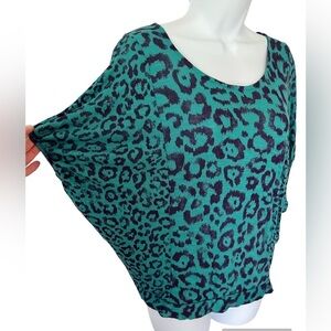 Ella Moss animal print batwing top. Super soft and stretchy. New with tags! Green and purple color. Size extra small. Measures approximately 27 inches from armpit to armpit with batwing design, 24.5 inches in length, and 10 inch sleeves from shoulder seam. Pair with black leather leggings and heels or boots. Purchased from Nordstrom.