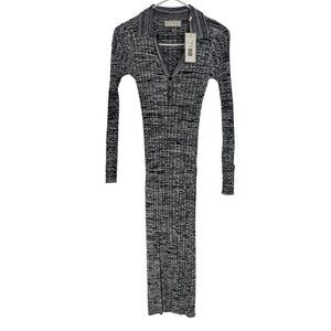 NWT Elle Tahari S Ribbed Marled Henley Sweater Dress Midi Length RN10208