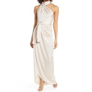 NWT Elle Zeitoune Grace Halter Neck Satin Wrap Dress Pearl Medium Missing Belt