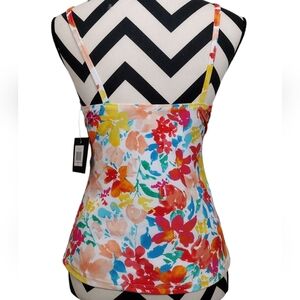 NWT Ellen Tracy floral summer vacation halter neck swimsuit top Sz 10.