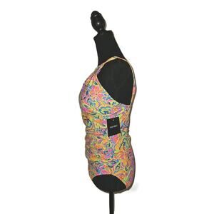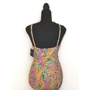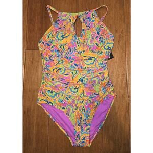 NWT! Ellen Tracy Keyhole High Neck 1 Piece Swimsuit Multicolor Sz 12 *read