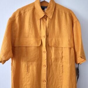 Vintage Linda Allard For Ellen Tracy Yellow/ Orange Linen Shirt Dress, Size 8