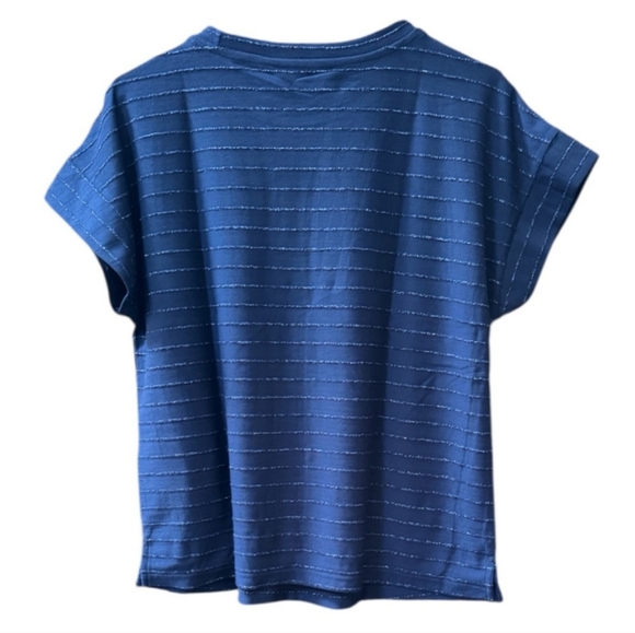 NWT Ellen Tracy Metallic Striped Short Sleeve Blue