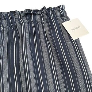 NWT Ellen Tracy Navy Striped 100% Linen Elastic Waist Skirt